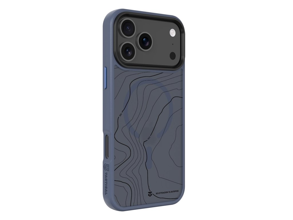 Kryt pro Apple iPhone 17 Pro Max s vestavěným magnetem pro MagSafe příslušenství, s topografickou grafikou, modrý