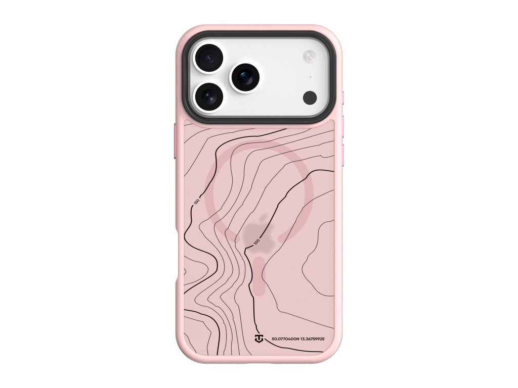 Kryt pro Apple iPhone 17 Pro Max s vestavěným magnetem pro MagSafe příslušenství, s topografickou grafikou, růžový