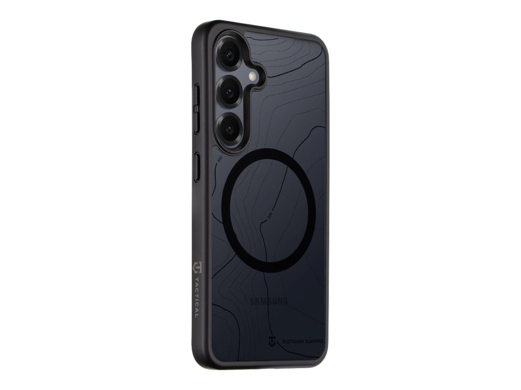 Kryt pro Samsung Galaxy S25 s vestavěným magnetem, s topografickou grafikou, černý