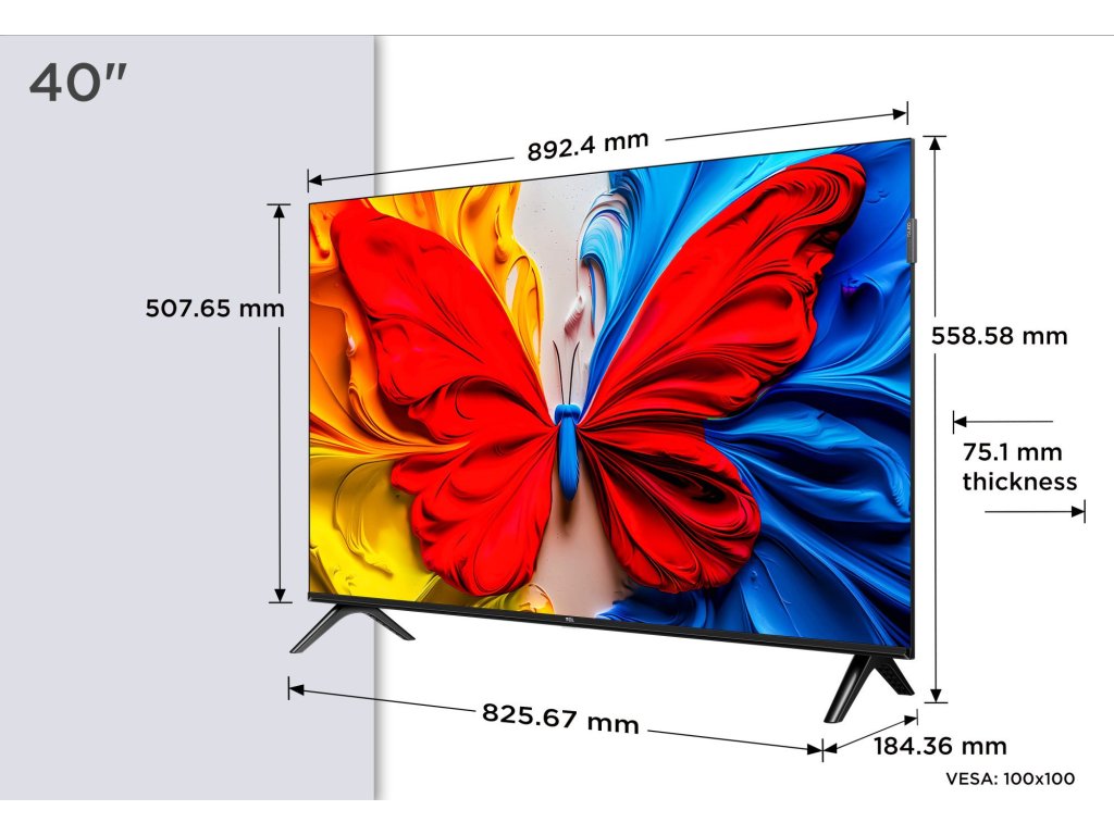 Televize TCL 40S5K QLED FHD TV 40" (102 cm), 1920x1080, DVB-T2/C/S2, WiFi, repro 2x 10W, Quantum Dot, HDR10, OS AndroidTV, VESA 100