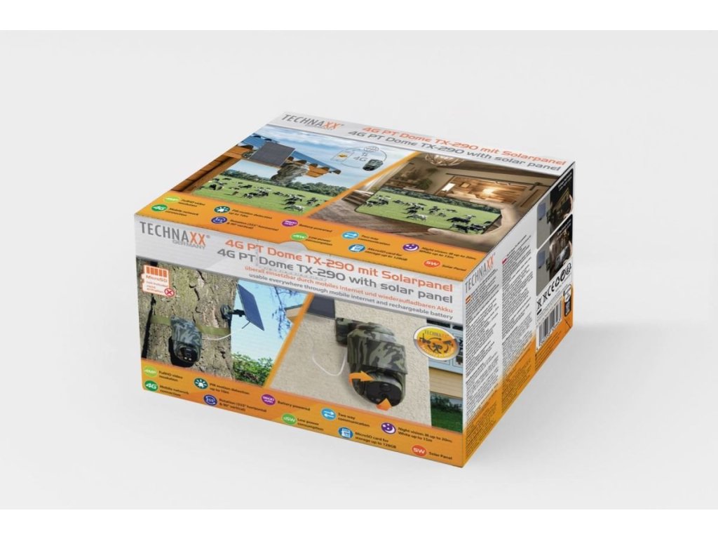 Technaxx 4G PT Dome TX-290 je moderní bezpečnostní kamera navržená pro nezávislé použití bez nutnosti připojení k elektrické síti.