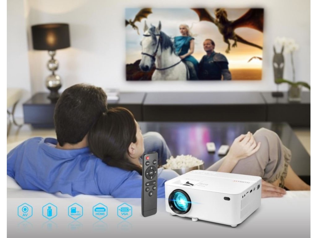 FullHD 1080p projektor s výkonnou 1800 lumenovou LED lampou (100 ANSI lumen) Nativní rozlišení: 800×480