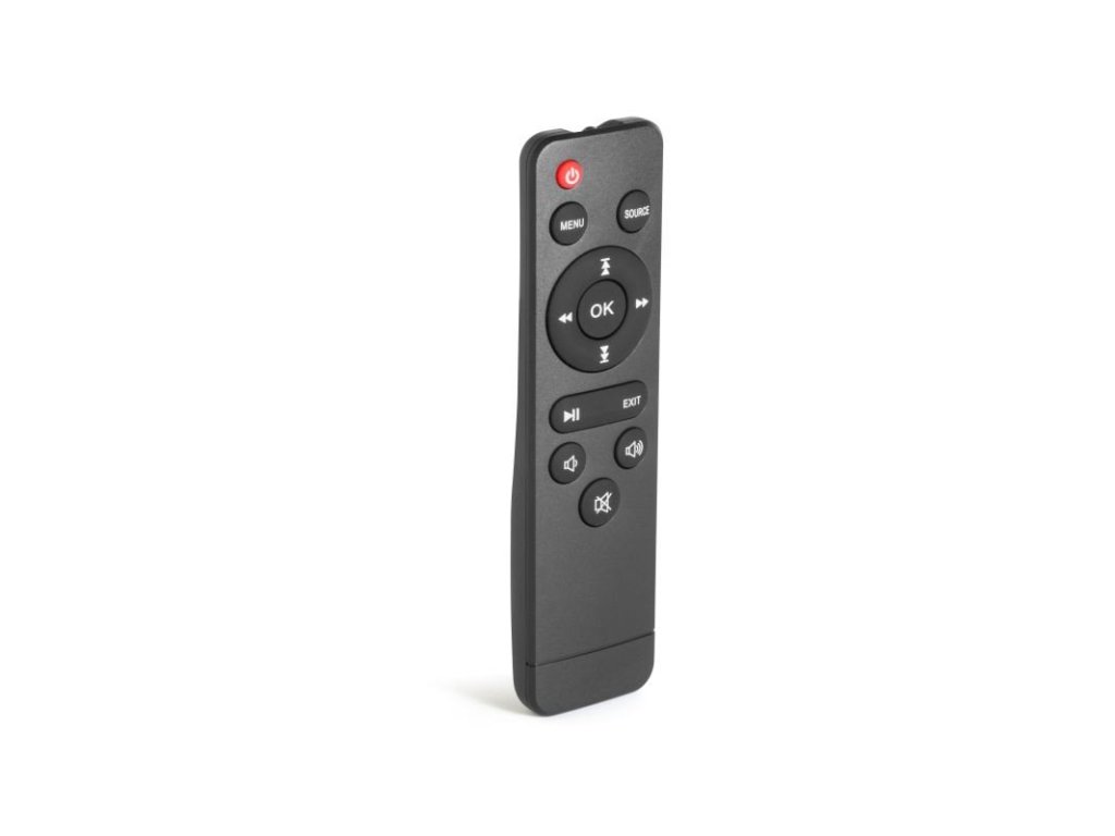 Přehrává videa, fotografe a audio soubory z USB, MicroSD nebo externího disku.