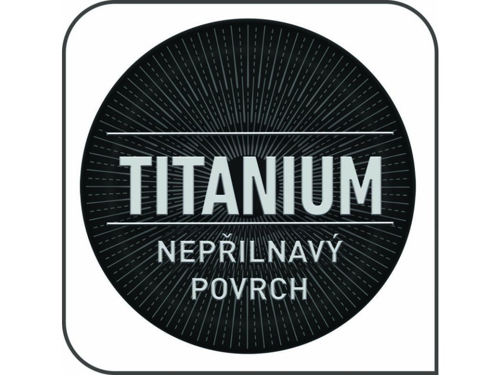 univerzální pánev • průměr 28 cm • pro všechny typy sporáků kromě indukce • Thermo-Fusion™+ rychlý ohřev • vnitřní nepřilnavý povrch TITANIUM • hliníkové tělo • ukazatel teploty Thermo-Spot® • pevná rukojeť • lze mýt v myčce nádobí