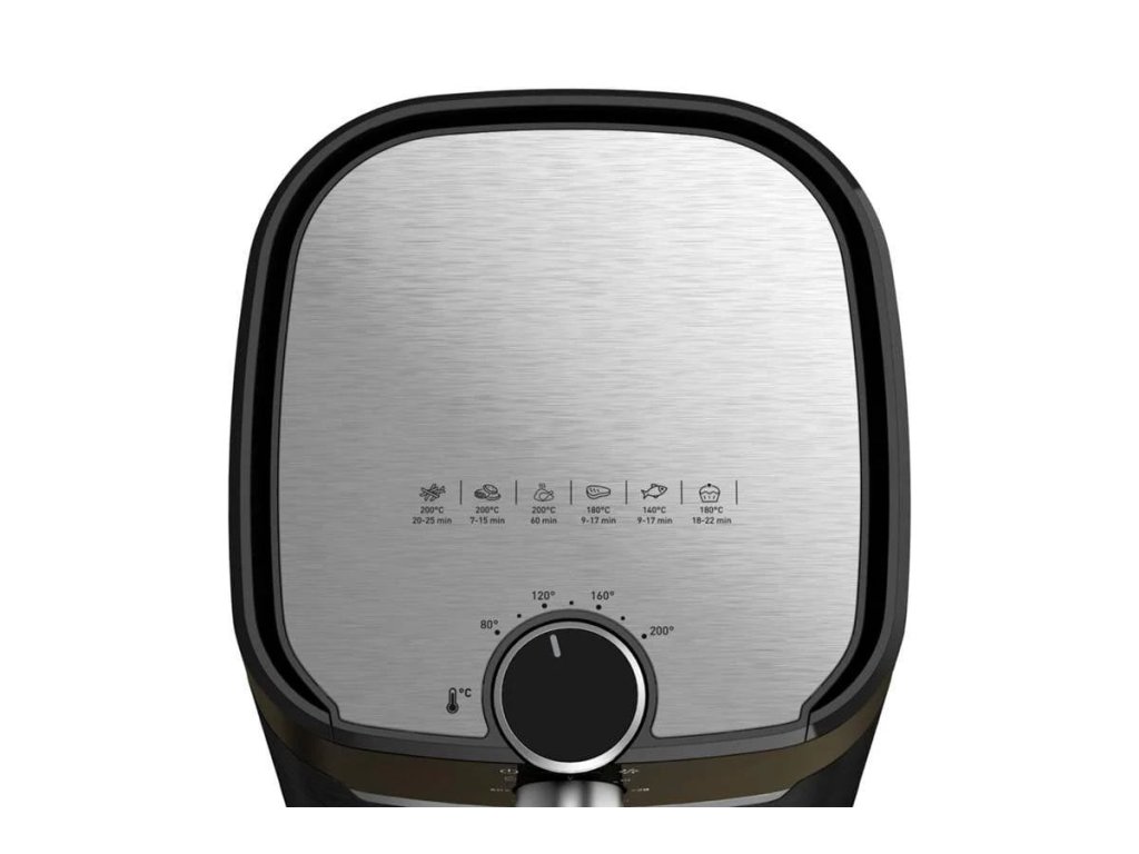 TECHNOLOGIE EXTRA CRISP: Zdravá fritéza pro křupavé a dozlatova opečené pokrmy na minimu tuku nebo zcela bez něj - o 99 % méně přidaného tuku (700 g čerstvých hranolků připravených v 8 ml oleje oproti tradičnímu fritování ve 2 l oleje),