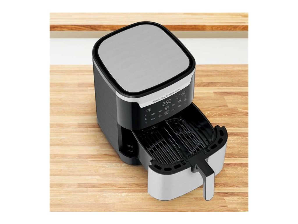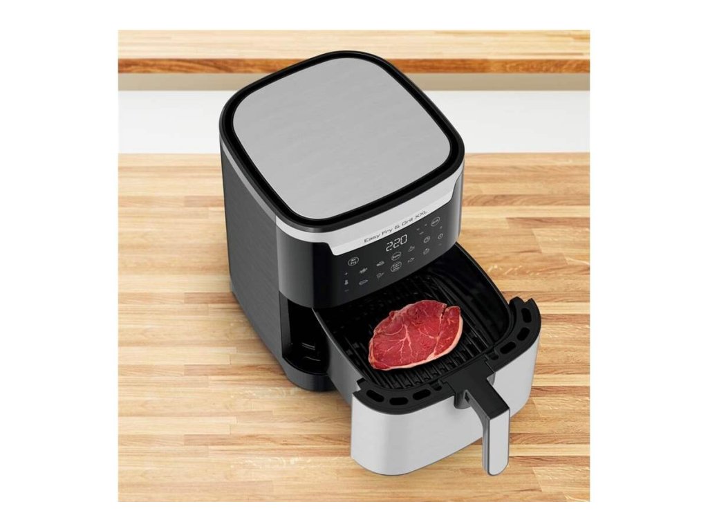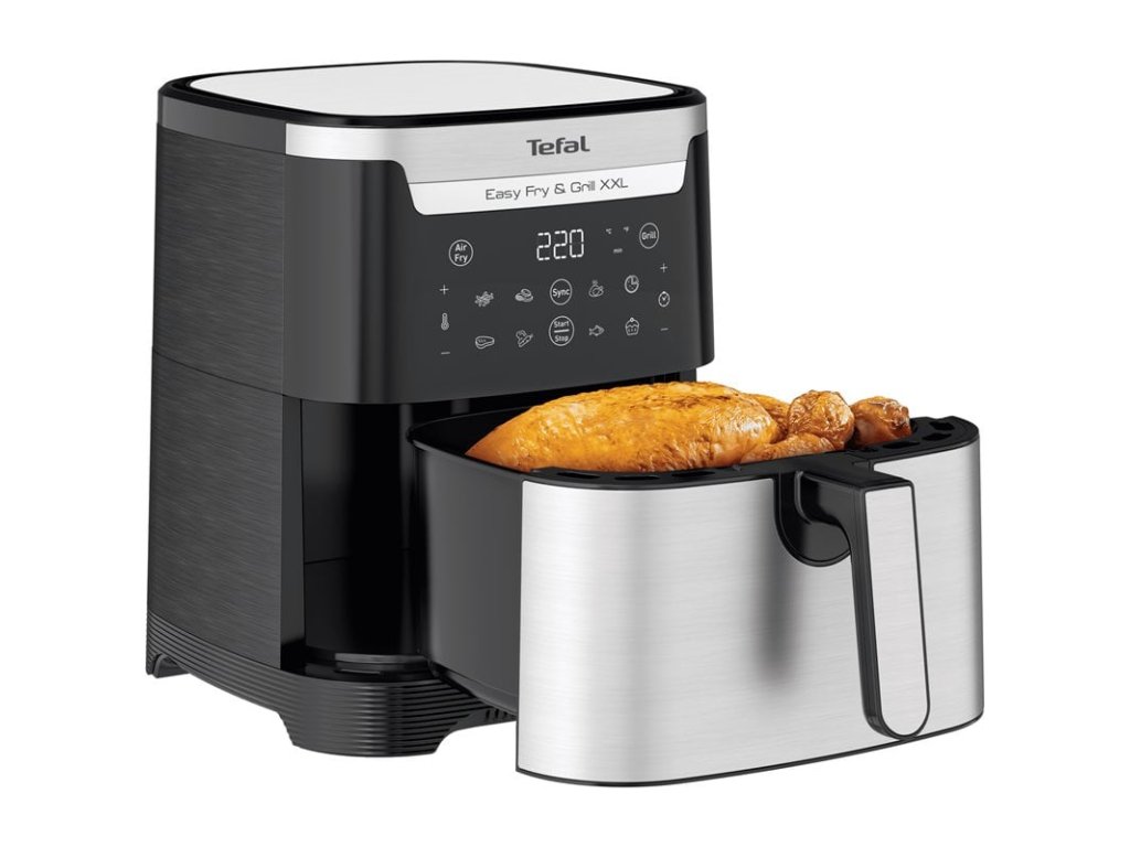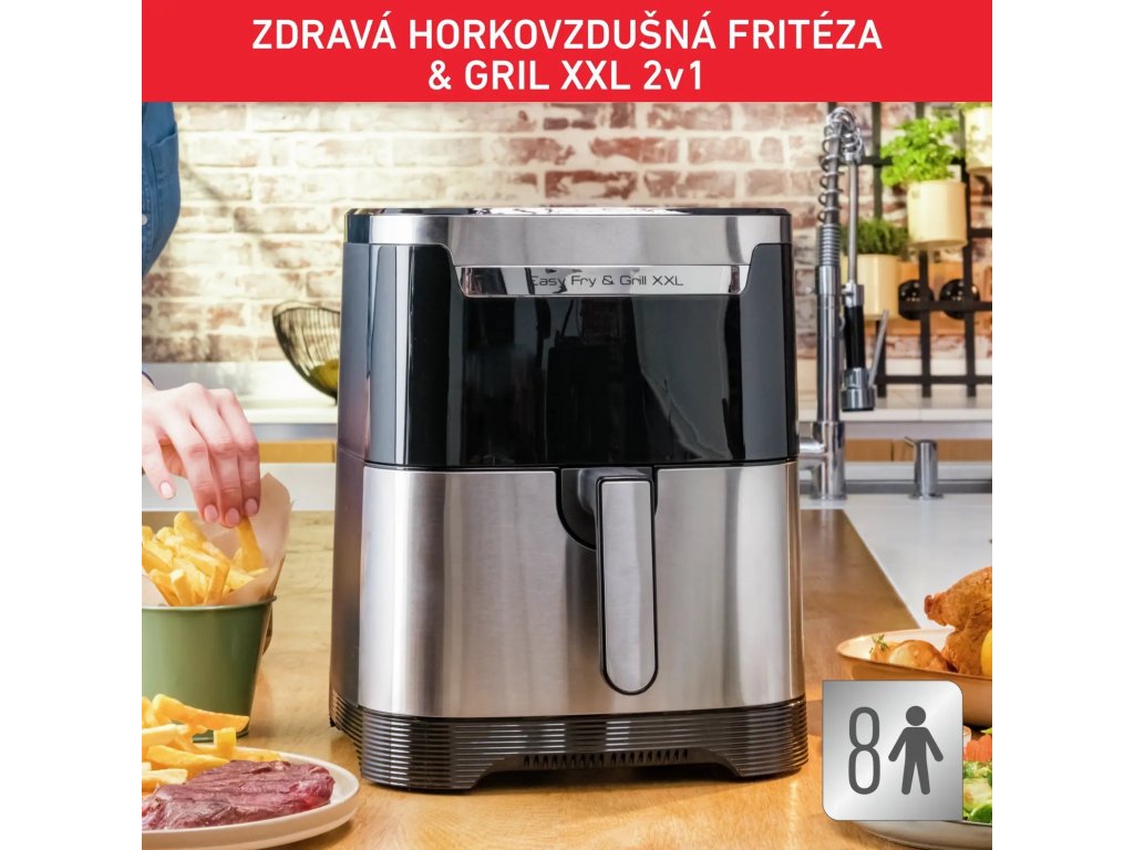 Máte velkou rodinu a fritézy se standardní kapacitou vám nestačí? Chcete si ušetřit čas a připravit maso i přílohu najednou? Vsaďte na novou horkovzdušnou fritézu Tefal Easy Fry & Gril 2v1 Inox EY801D15 s XXL objemem a oddělovací přepážkou Flexcook, díky které můžete vařit dva pokrmy v jeden čas.