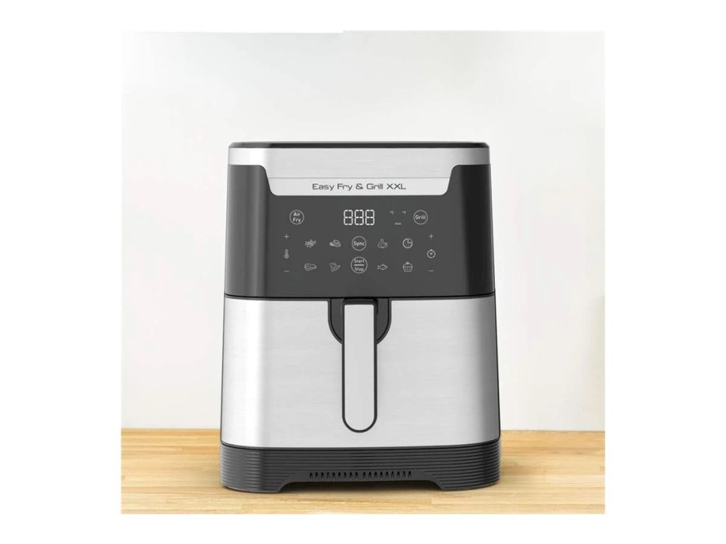 Easy Fry & Grill 2v1 XXL nabízí kompletní všestrannost a snadnější vaření rychlých a zdravých domácích pokrmů každý den pro až 8 osob. Je možné přidat praktický oddělovač a přejít z XXL objemu pro velké potraviny na dvě mísy k přípravě 2 různých pokrmů zároveň, a to díky režimu Intelligent Synchronization. Objevte technologii extra křupavé přípravy pro chutnější pokrmy smažené v horkovzdušné fritéze s menším množstvím oleje a technologii grilu pro přípravu všech typů jídel.