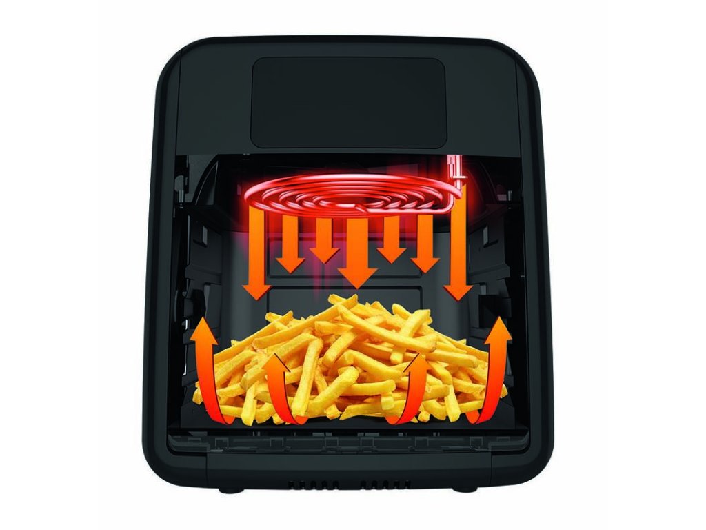 horkovzdušná fritéza • příkon 2 050 W • objem 11 l • LCD displej • 8 přednastavených programů • 9 automatických funkcí • časovač • světelná signalizace • nastavitelná teplota