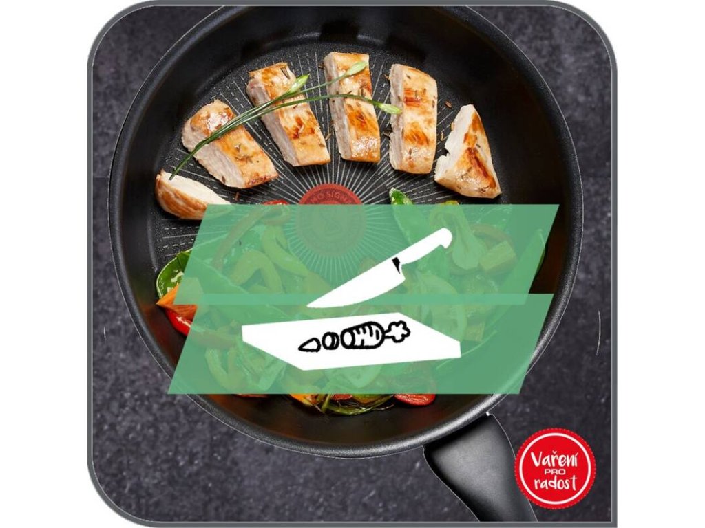 Milujete restované pokrmy a rádi si je připravujete v pohodlí domova? Skvělým pomocníkem se vám stane wok pánev Tefal Unlimited G2551972. Je upravena speciálním odolným a nepřilnavým povrchem TITANIUM Anti-Scratch. Ten v sobě slučuje praktičnost nepřilnavého povrchu a mimořádnou odolnost proti poškrábání, která ustojí i kovové náčiní. Díky technologii THERMO-SIGNAL bezpečně poznáte ten správný moment, kdy je pánev ideálně nahřátá a připravená pro restování.