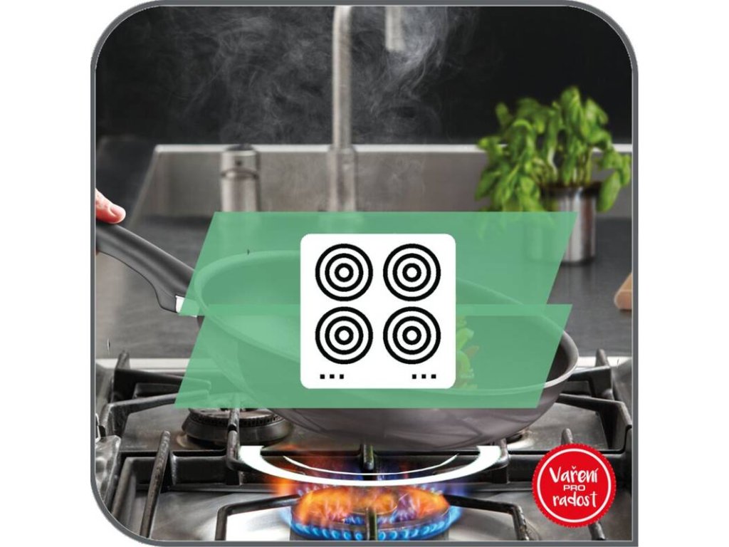 pánev wok • průměr 28 cm • extra odolný nepřilnavý povrch TITANIUM Anti-Scratch • technologie THERMO-Fusion pro rovnoměrné vedení tepla • technologie THERMO-SIGNAL pro indikaci ideální teploty pro začátek smažení a vaření
