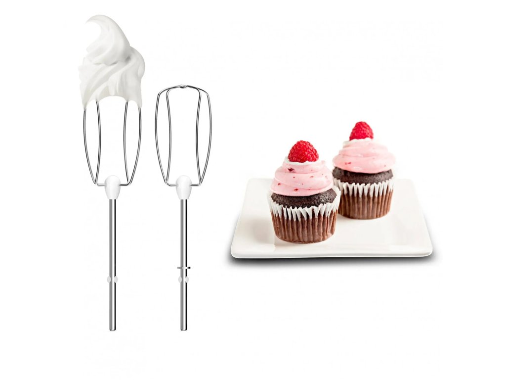 V balení nalezntete tyčový nástavec, šlehací metly a hnětací háky z nerezové oceli