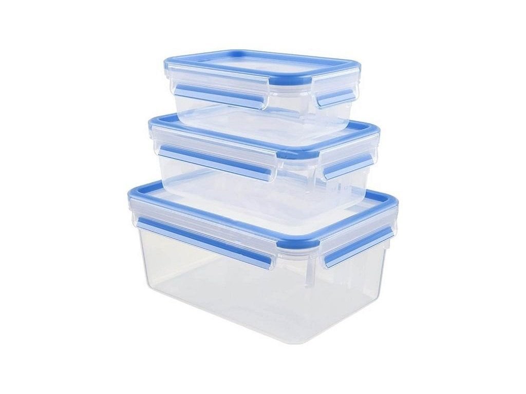 Plastové dózy TEFAL K3028912 MASTERSEAL Fresh Box vám umožní připravovat, servírovat, uchovávat a přepravovat potraviny bez starostí. 100% těsnění: dokonalý způsob uchovávání, bezpečné přepravování a optimální ochrana proti pachům. 100% hygiena: inovativní technologie víka, žádné bakterie. 100% zdravotně vyhovující: vyrobená v Německu. 100% vhodné do myčky: snadné použití. 100% bezpečné použití v mikrovlnné troubě. 100% mrazuvzdorné. Objem dóz: 0,55 l, 1,0 l a 2,3 l.