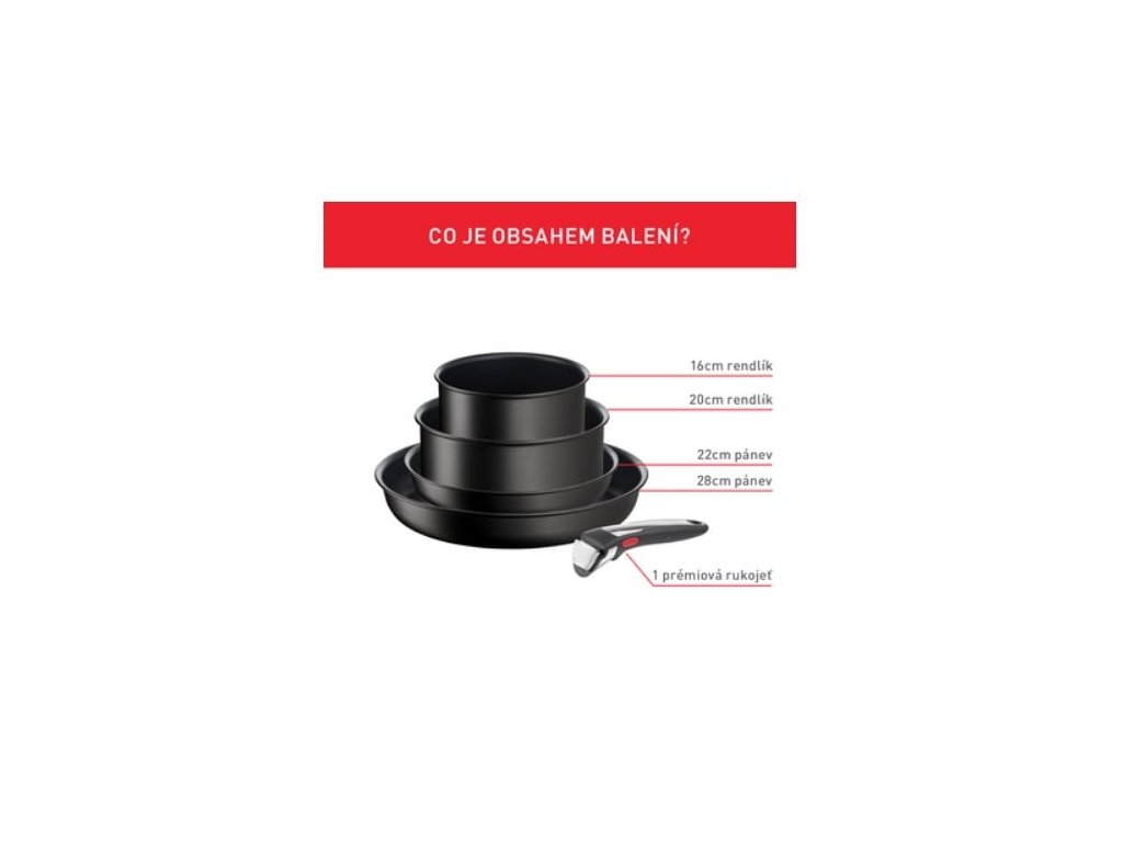 Sada hrnců a pánví Tefal Ingenio Unlimited On L3959543 se stane vaším praktickým pomocníkem v kuchyni. Skládá se ze 4 hrnců/pánví a jedné odnímatelné rukojeti, kterou lze volitelně používat na vybraný hrnec či pánev. Nádobí se pyšní nepřilnavým povrchem a umožňuje tedy vaření s použitím minimálního množství tuku. Navíc jej lze bez problémů použít na všechny zdroje ohřevu včetně indukce. Bez poklice a rukojeti lze nádobí umístit také do trouby. Díky možnosti stohování bude sada šetřit místo ve vaší kuchyni.