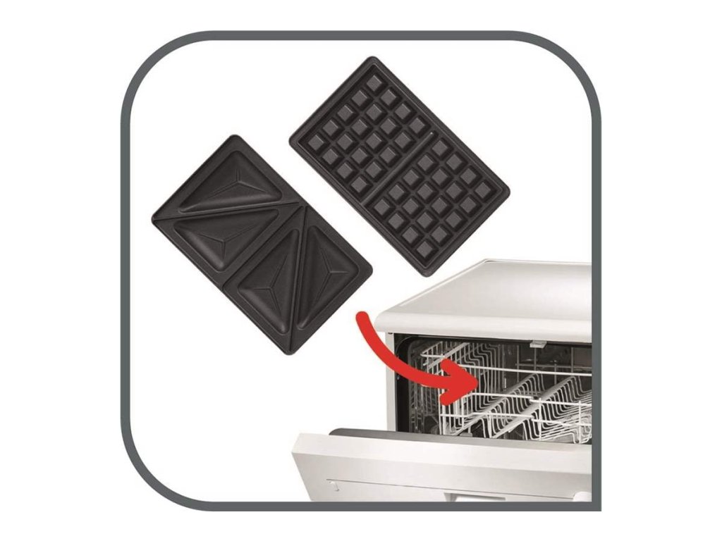 Snack time, multifunkční přístroj Tefal SW342D38 Snack Time 3 in 1 s kovovou vložkou pro přípravu vaflí, trojúhelníkových sendvičů a panini. Jedinečné řešení pro snadnou přípravu sladkých i slaných svačinek. Je kompatibilní i s deskami Snack Collection