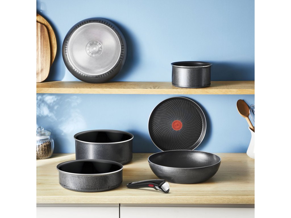Stohovatelný praktický design Tefal Ingenio vám ušetří spoustu místa také při skladování v kuchyni. Nádobí jednoduše poskládáte do sebe a máte uklizeno. Díky kompaktnímu formátu je snadné i uložení v lednici.