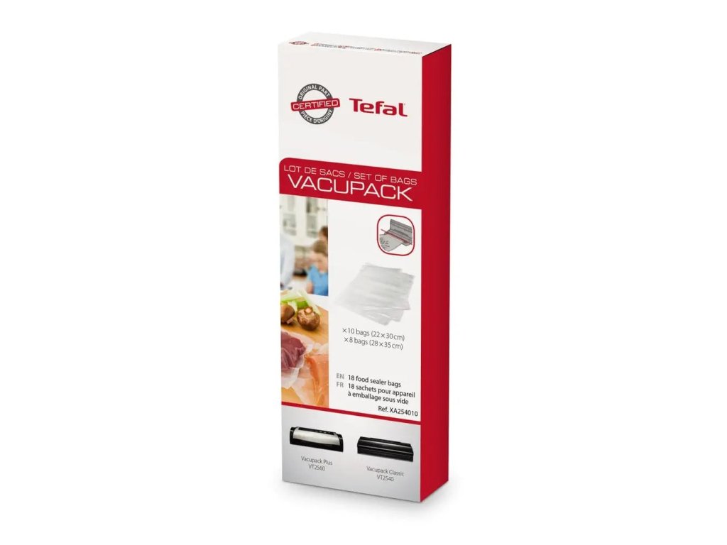 sáčky na vakuování • balení obsahuje 10 ks sáčků s rozměrem 22 × 30 cm • 8 ks sáčků s rozměrem 28 × 35 cm • kompatibilní s vakuovačkou Tefal Vacupack