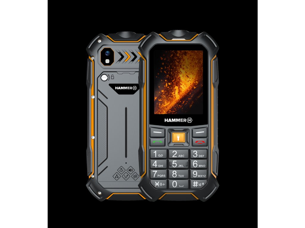 Velká tlačítka, hlasitý reproduktor, rádio, které funguje bez sluchátek, a funkční fotoaparát dělají z tohoto telefonu HAMMER telefon, který si poradí ve všech pracovních podmínkách!