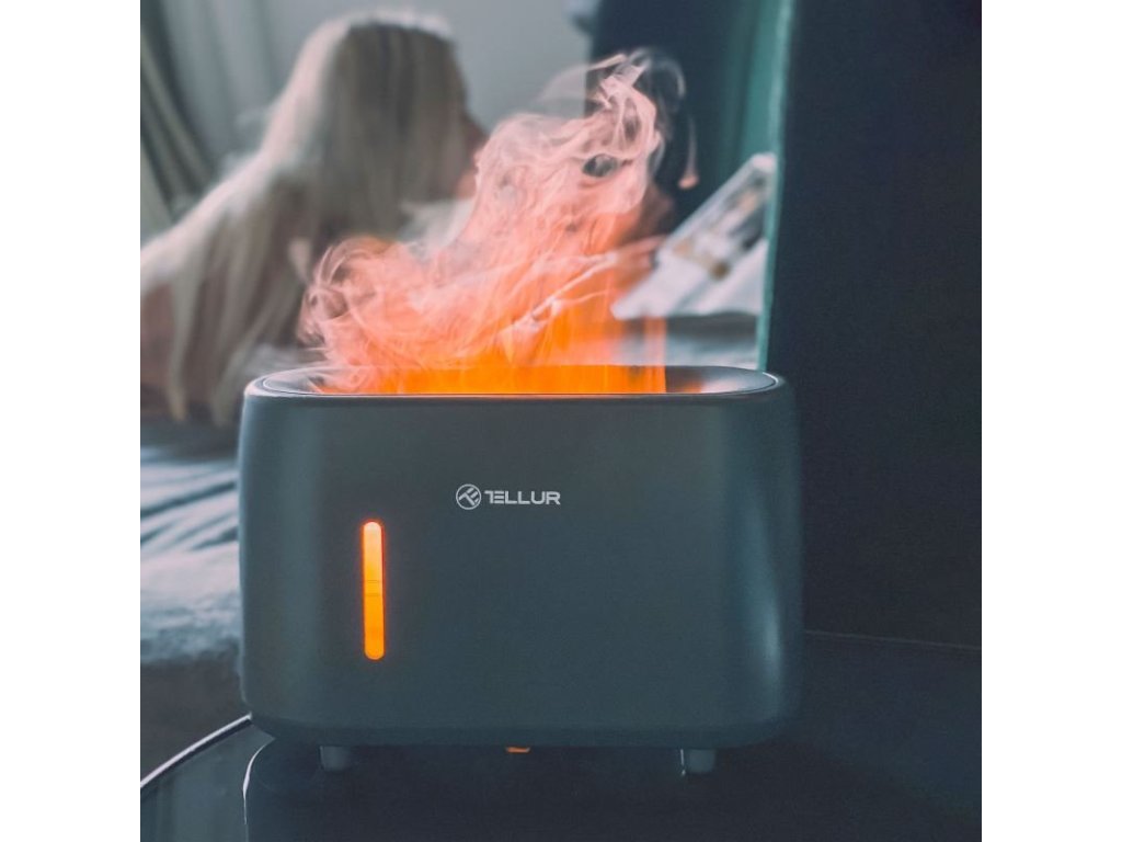 Tellur flame aroma difuzér, 240 ml, LED, tmavě šedá