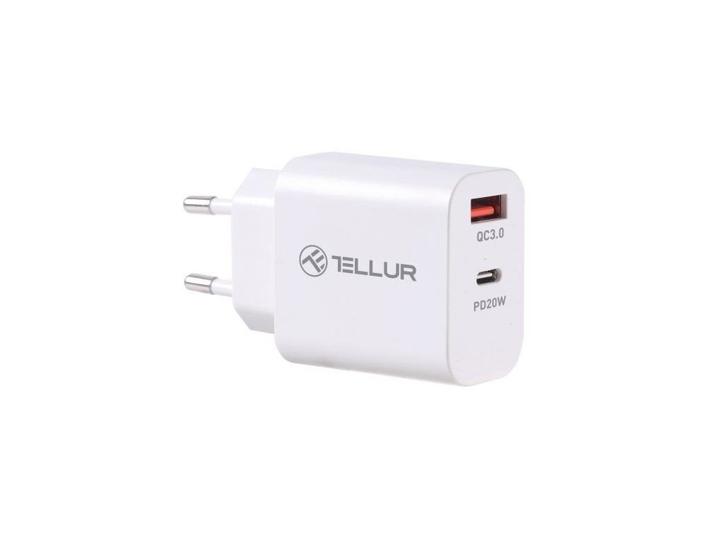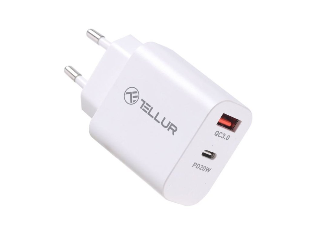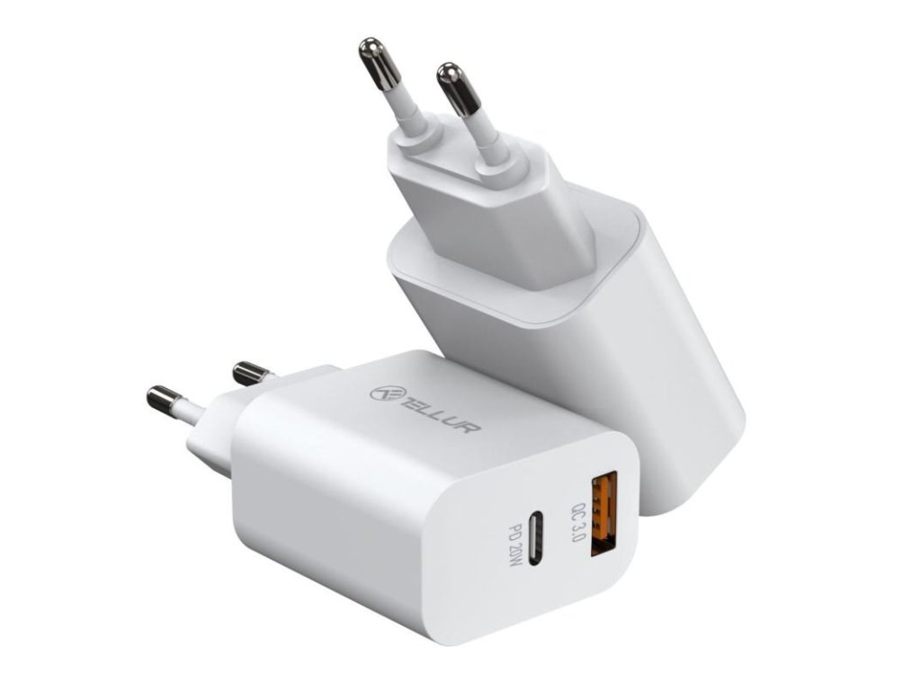Tellur PDHC101 síťová dvouportová nabíječka, PD 20W + QC3.0 18W - tato nabíječka je až 4krát rychlejší než standardní nabíječky, takže už nikdy nebudete muset čekat, až se vaše zařízení znovu nabije.