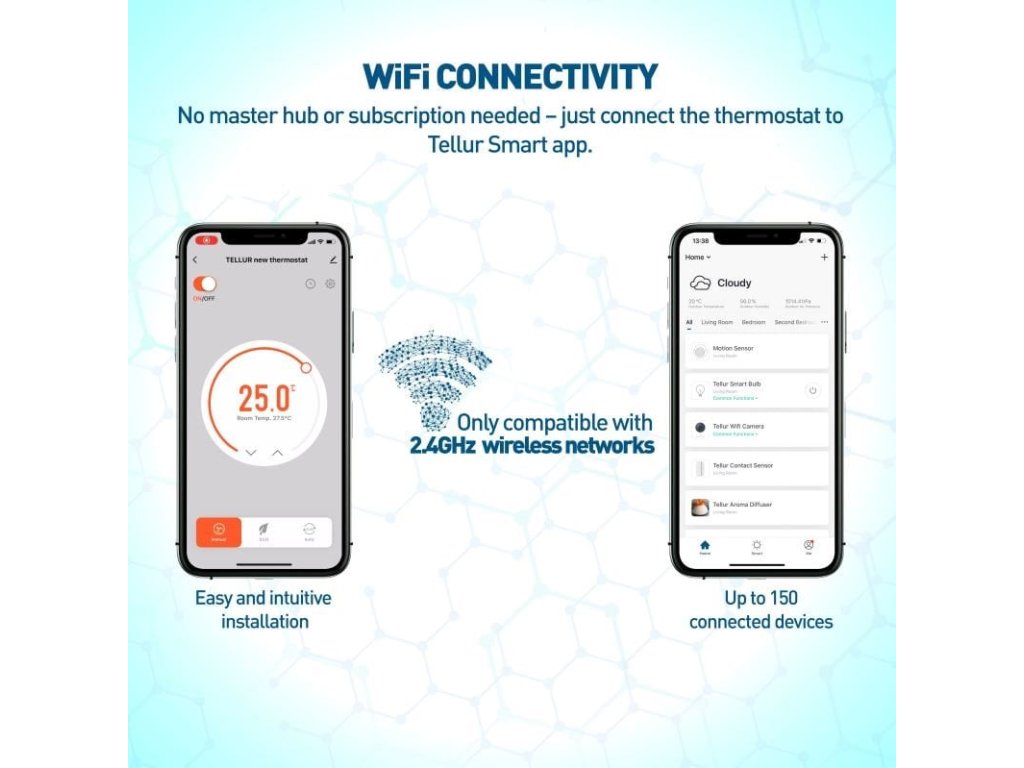 WiFi 2,4 GHz pro komunikaci s aplikací Tellur Smart v telefonu nebo tabletu