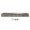 Switch 24x 10/100/1000Mb/s, Auto MDI/MDIX, montáž do racku 19", držáky součástí, 8K MAC adresy, přepínací kapacita 48 Gb/s, buffer 2MB, Zcela tichý bez ventilátorů.