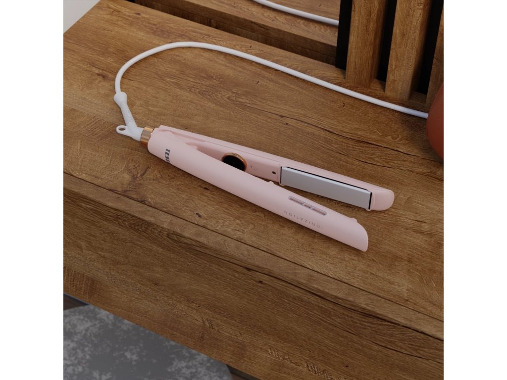 Ionizace uzavírá vlhkost vlasu a minimalizuje poškození při tepelné úpravě. Ionty s negativním nábojem snižují statickou elektřinu, dovolují žehličce snadněji klouzat po vlasech a zabraňují efektu poletujících vlasů. Díky 40 milionům negativních iontů bude výsledný účes hladký a lesklý, jako ze salonu.