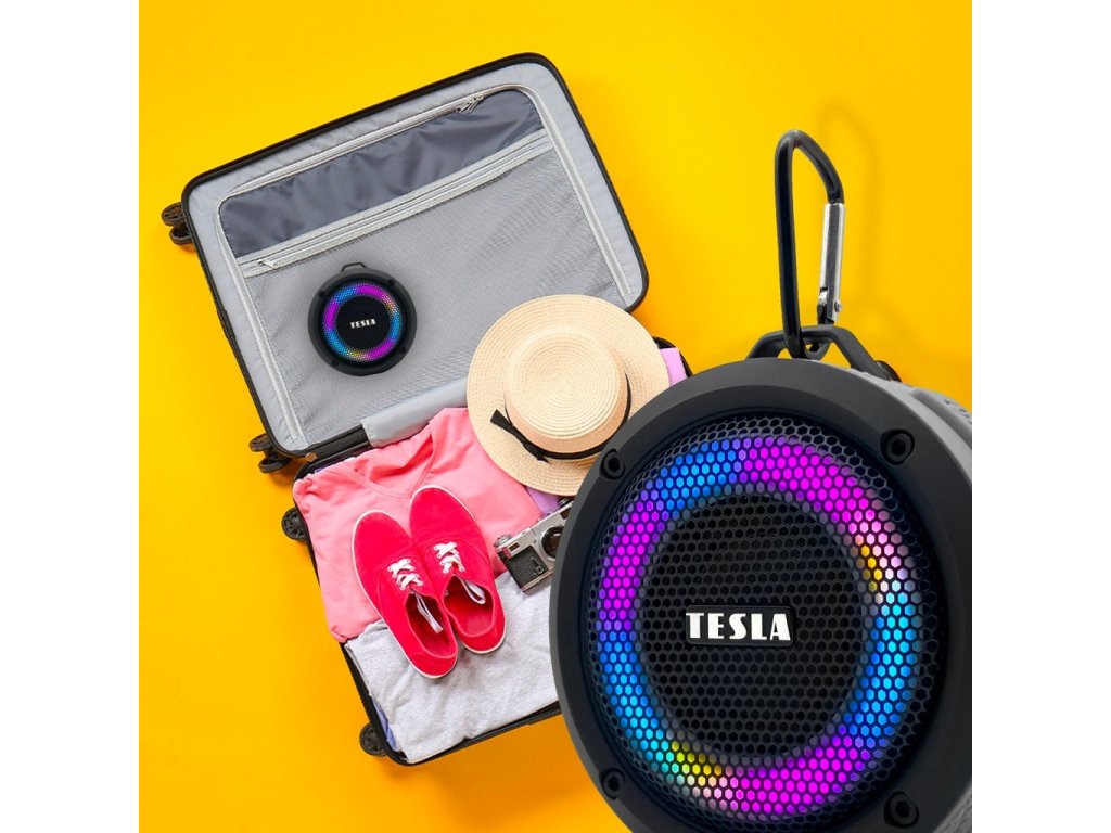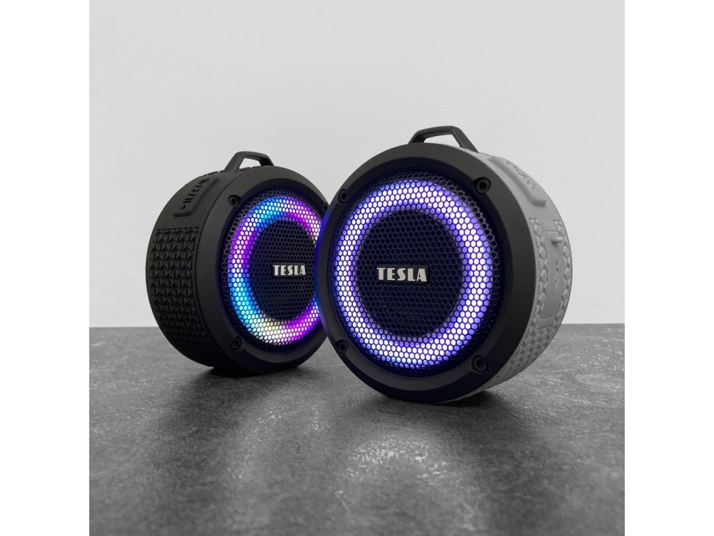 Voděodolný Bluetooth reproduktor TESLA Sound BS60 s RGB podsvícením, Dual Connect, Bluetooth 5.0 a kompaktním designem ideálním na cesty.