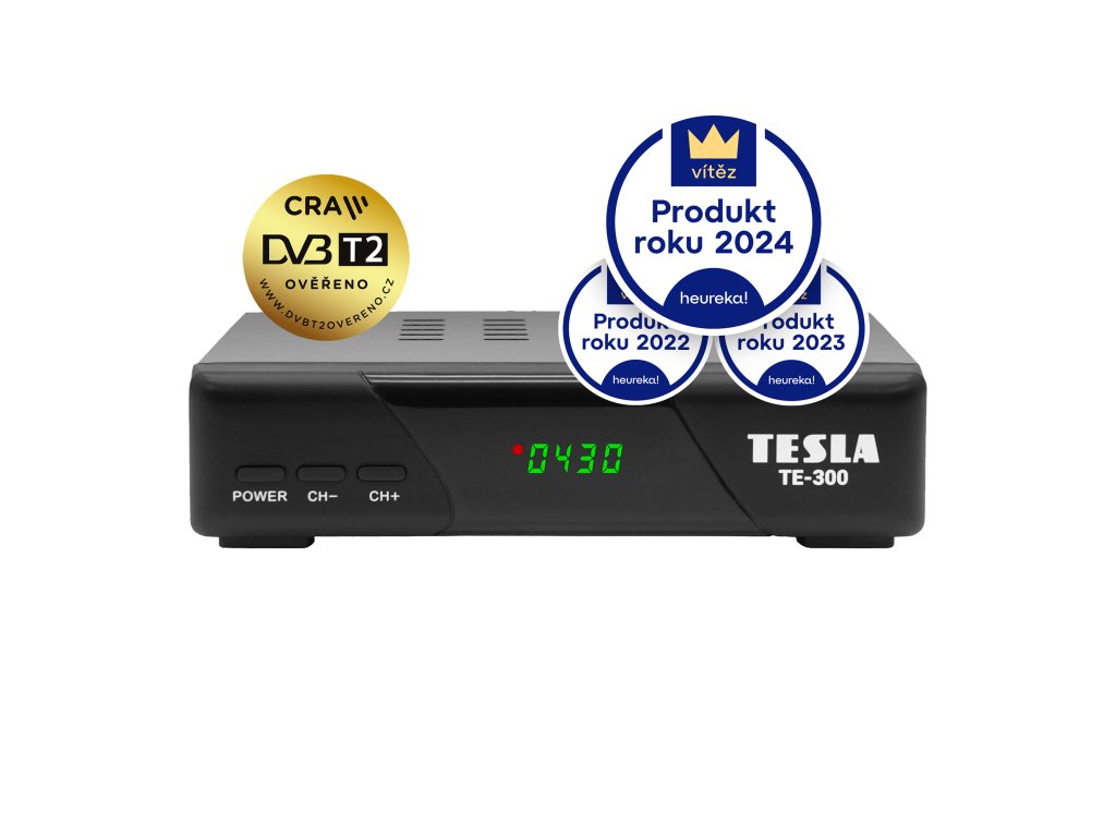 TESLA TE-300 DVB-T2 přijímač pro nové digitální vysílání v České republice H.265 (HEVC).