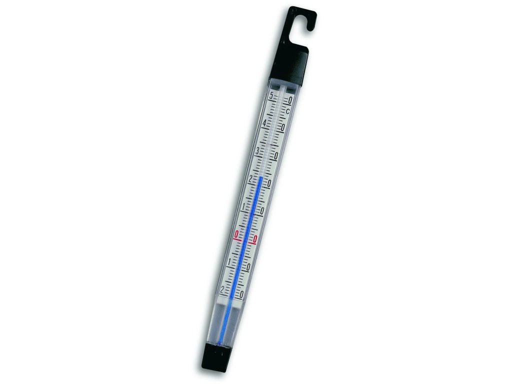 15 cm dlouhý plastový teploměr TFA 14.1012 s přehlednou stupnicí a háčkem v horní části pro zavěšení.
