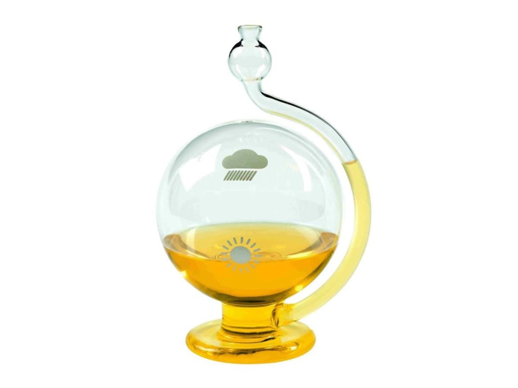 Tento Goethův barometr ukazuje rychle a přesné změny tlaku vzduchu. Stoupá-li tlak vzduchu, voda v krčku klesá a předpoklá se zlepšení počasí, naopak stoupá-li sloupec s kapalinou v krčku, blíží se zhoršení počasí.