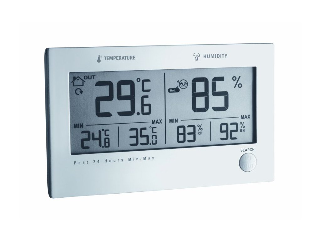 Bezdrátový teploměr s vlhkoměrem TWIN PLUS měří vnitřní a venkovní teplotu a vlhkost a zobrazuje úroveň komfortu na základě naměřených hodnot. Teploměr rovněž zaznamenává a zobrazuje maximální a minimální naměřené hodnoty za posledních 24 hodin. Přijímací část teploměru i venkovní čidlo lze postavit na rovnou podložku díky výklopnému stojánku nebo zavěsit na stěnu. Venkovní čidlo přenáší do teploměru data na frekvenci 434 MHz na vzdálenost maximálně 30 m ve volném prostoru. K teploměru je možné připojit pouze jedno venkovní čidlo, které je součástí balení.