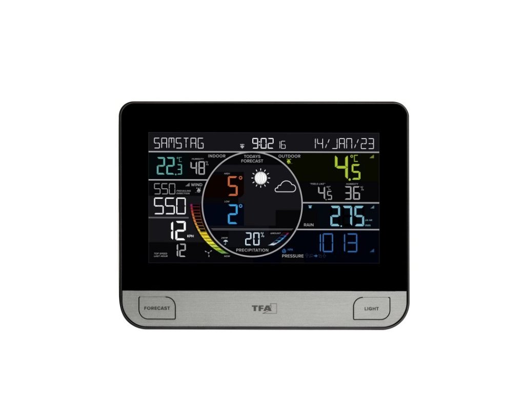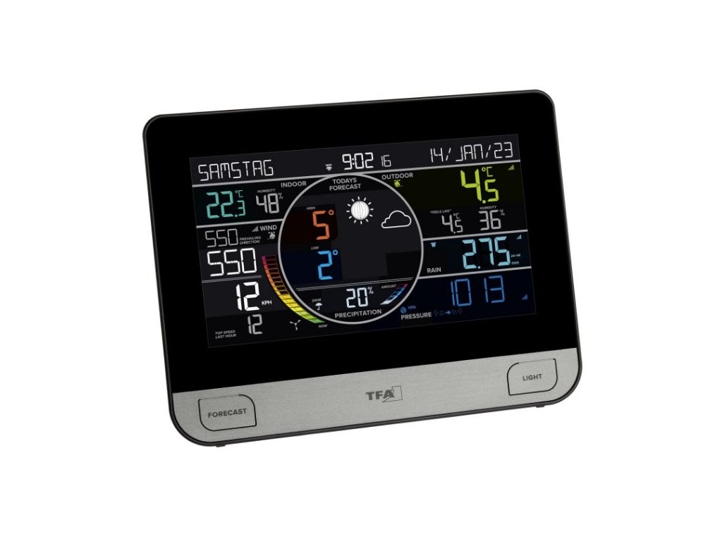 TFA 35.8003.01 je to pravé pro každého, kdo chce pozorovat počasí skutečně komplexně. Tato bezdrátová meteorologická stanice s Wi-fi doplňuje své vlastní naměřené údaje o profesionální předpověď počasí z online meteorologické služby.