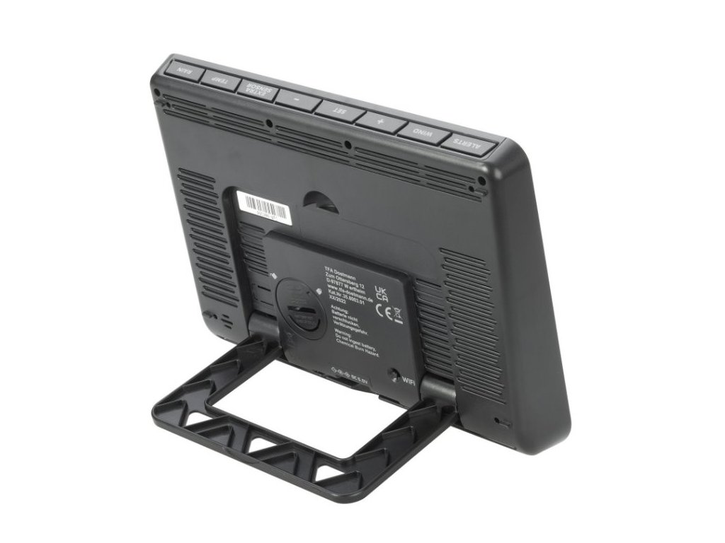 Meteostanici můžete také připojit do místní sítě WiFi sítě pomocí bezplatné aplikace TFA VIEW. Po připojení stanice k internetu se změní zobrazení na displeji a malý symbol ukazuje, které informace jsou nyní importovány prostřednictvím online meteorologické služby. Místo nepřesné předpovědi počasí založené na změnách tlaku vzduchu meteostanice nyní přijímá a zobrazuje profesionální a průběžně aktualizovanou 12hodinovou předpověď pro váš region. Předpověď na příštích 12 hodin nebo 7 dní můžete vyvolat i manuálně stiskem tlačítka. Zobrazí se i další zajímavé údaje o počasí, například očekávané maximální a minimální teploty a pravděpodobnost deště. Čas a kalendář jsou pravidelně aktualizovány a pomocí aplikace TFA VIEW můžete na displeji meteostanice zobrazit dokonce i osobní zprávy nebo poznámky a další informace o počasí.