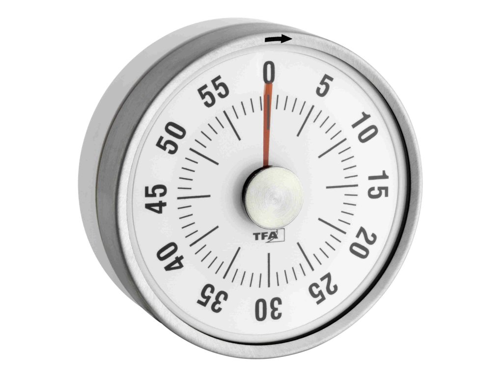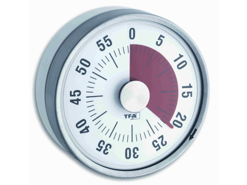 TFA 38.1028.02 je malá, ale praktická pomůcka do každé domácnosti, především do kuchyně. Požadovaná doba se nastavuje otočením ciferníku. Nastavenou dobu usnadňuje červená ručička. Ze zadní strany magnet sloužící pro snadné uchycení.