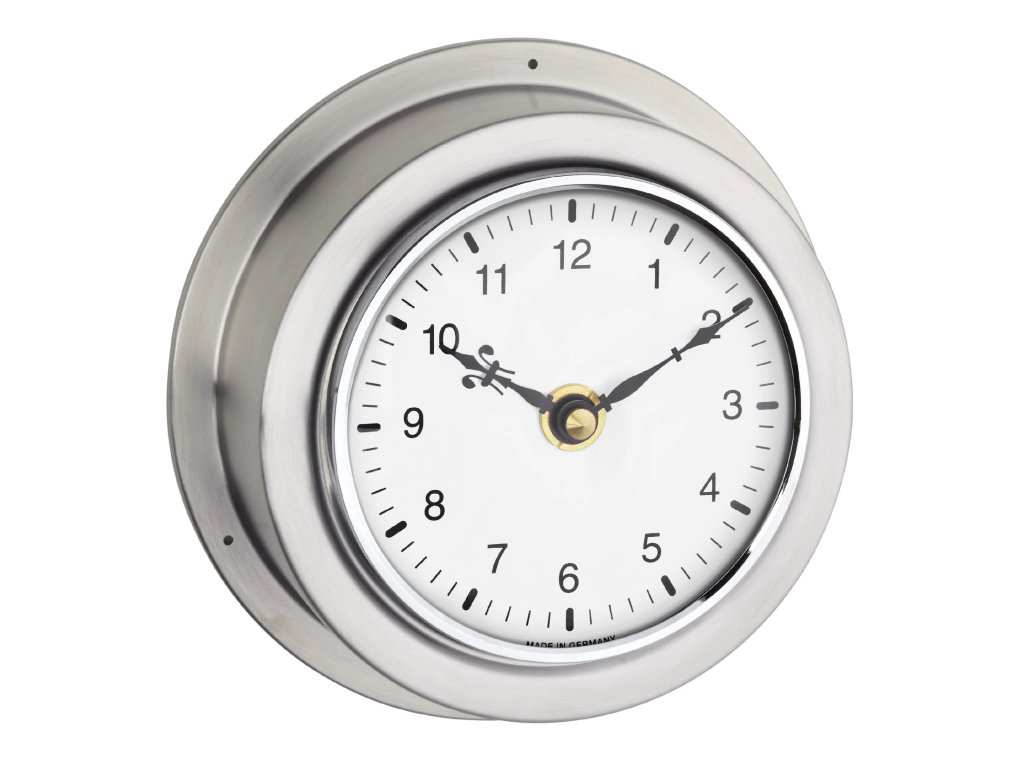 Nástěnné hodiny vyrobené z nerezové oceli v klasickém námořním designu. Přístroj se kompletně vyrábí v Německu.