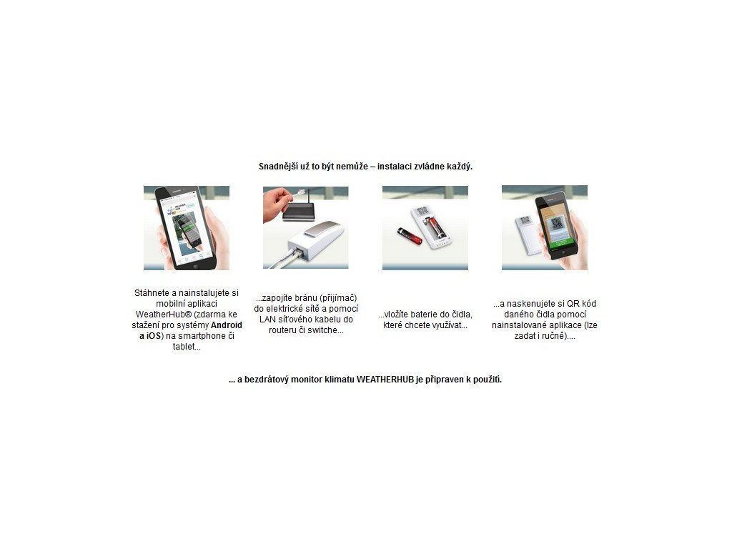 WEATHERHUB neboli bezdrátový monitor klimatu je inteligentní zařízení pro bezdrátovou kontrolu klimatických podmínek doma či v práci. Toto zařízení udělá z vašeho chytrého telefonu nebo tabletu doslova mobilní meteostanici.