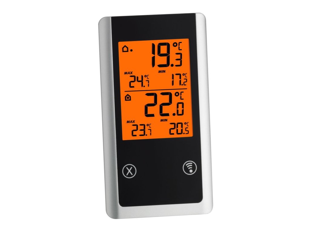 Bezdrátový teploměr TFA 30.3055.01 měří jak vnitřní, tak venkovní teplotu. Jeho výhodou je stálé zobrazení maximálních a minimálních naměřených hodnot teploty. K teploměru je možné připojit pouze jedno venkovní čidlo, které je součástí balení. Ve volném prostoru má čidlo dosah až 100m. Venkovní čidlo i přijímací část teploměru lze zavěsit na stěnu postavit na rovnou podložku díky výklopnému stojánku nebo. Přístroj zároveň umožňuje krátkodobé podsvícení displeje přijímací části. VLASTNOSTI A FUNKCE venkovní teplotní senzor s bezdrátovým přenosem na frekvenci 433 Mhz umístění vysílače až 100m od základny vnitřní teplota MIN/MAX hodnoty pro vnitřní a venkovní teplotu hlavní jednotku lze postavit na rovnou podložku nebo pověsit na zeď jednoduchá instalace bez použití kabelů TECHNICKÁ SPECIFIKACE Měřící rozsah - Vnitřní teplota: 0°C až +50°C Měřící rozsah - Venkovní teplota: -50°C až +70°C Dosah signálu: max. 100m v otevřeném prostoru Vysílací frekvence: 433MHz Základna spotřeba energie: 2 x 1,5V AAA baterie (nejsou součástí balení) rozměry: 82 x 25 (72) x 152 mm váha: 125g (pouze přístroj) Vysílač 2 x 1,5V AAA baterie (nejsou součástí balení) rozměry: 61 x 28 x 92 mm váha: 54g (pouze přístroj)