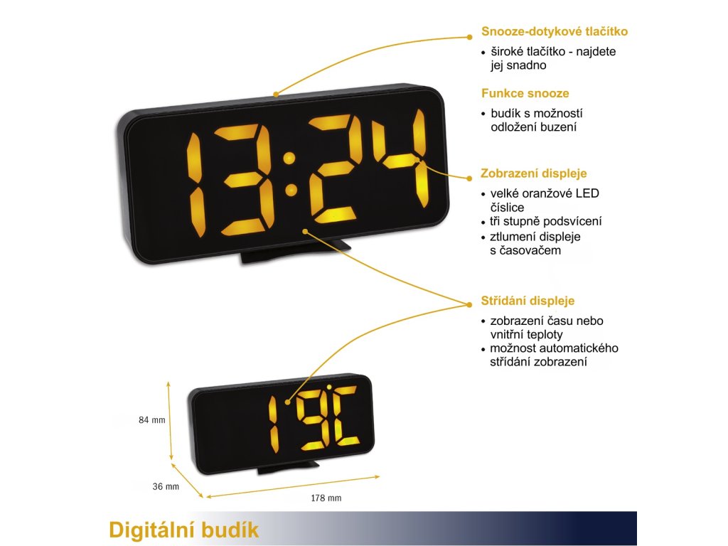 TFA Digitální budík s teploměrem a velkými LED číslicemi