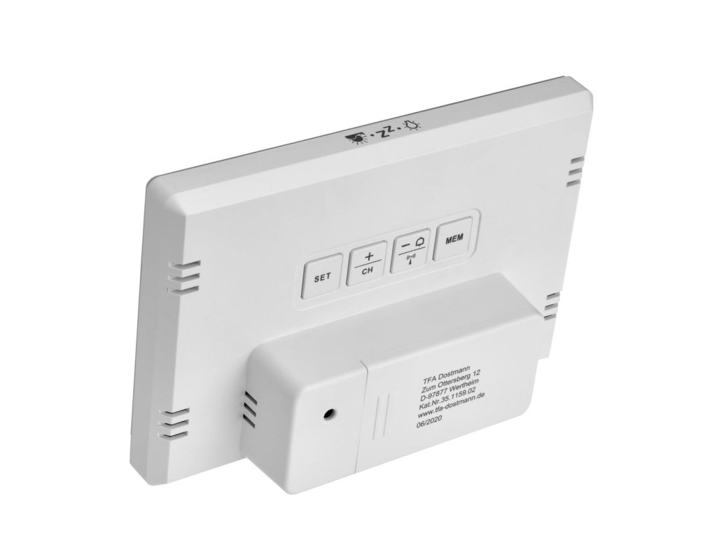 Díky zobrazení vnitřní teploty a vlhkosti můžete získat představu o vnitřním klimatu ve vašem domě. Zobrazené úrovně komfortních zón poskytují další informace o kvalitě vzduchu v místnosti. Max. -Min. funkce umožňuje zjistit na maximální a minimální hodnoty venkovní teploty a vnitřní teploty a vlhkosti. Čas, datum a den v týdnu jsou řízeny rádiovým signálem DCF. Díky budíku s nastavitelnou funkcí opakovaného buzení můžete meteorologickou stanici použít také jako rádiem řízený budík. Jako speciální funkce zobrazuje jasný displej meteorologické stanice čas východu a západu slunce s délkou dne a aktuální fází měsíce ve vašem místě. Aby bylo zajištěno, že je digitální displej snadno čitelný i v noci, lze stisknutím senzorového tlačítka na 10 sekund zapnout modravé osvětlení pozadí.