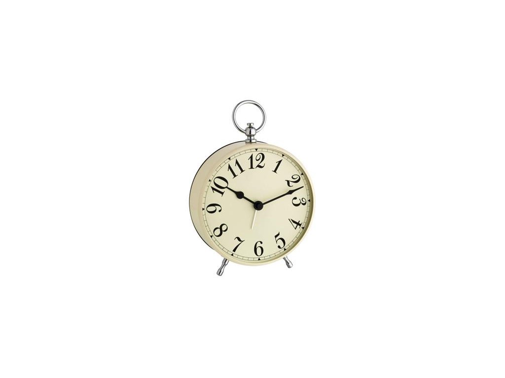 Elektronický budík s analogovým displejem, retro provedení, tichý chod, funkce opakovaného buzení, možnost krátkodobého podsvícení ciferníku, fluorescenční ručičky, barva béžová