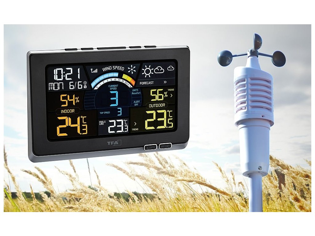 Bezdrátová meteostanice TFA 35.1140.01 Spring Breeze je vhodná zejména pro ty, kteří hledají kompromis mezi domácí a hobby kategorií - Spring Breeze totiž měří kromě základních hodnot (teplota, vlhkost a tlak vzduchu) také rychlost větru. Díky tomu je schopná spočítat např. také venkovní pocitovou teplotu a hodnotu Wind chill. Ta souvisí s tím, že naši pocitovou teplotu výrazně snižuje vítr. Náš organismus za teplot nižších než 37 °C ohřívá slabou vrstvu okolního vzduchu. V blízkosti naší pokožky se vytváří izolační vrstva teplého vzduchu. Pokud vane vítr, teplejší vzduch v blízkosti pokožky ztrácíme a více pociťujeme chlad.