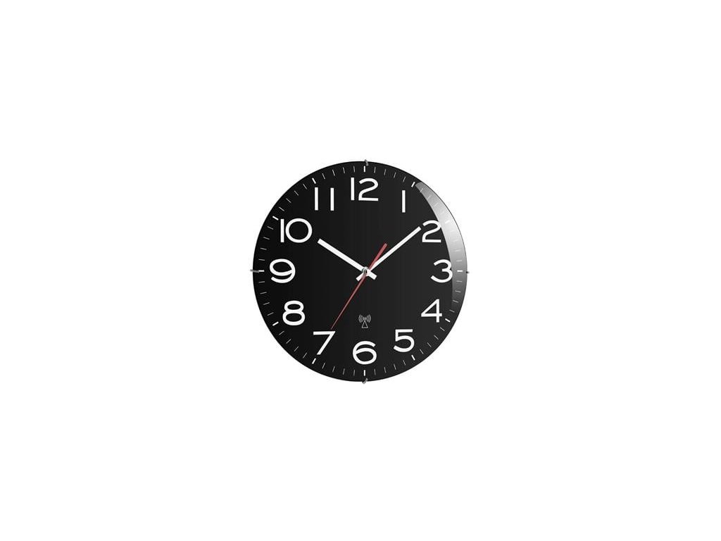 Nástěnné hodiny řízené DCF signálem, kryt hodin ze skla, štíhlé tělo, elegantní provedení, velmi dobrá čitelnost, průměr 310 mm, napájení 1,5 V AA baterie, ideální do domácnosti, kanceláře, čekárny či vstupní haly