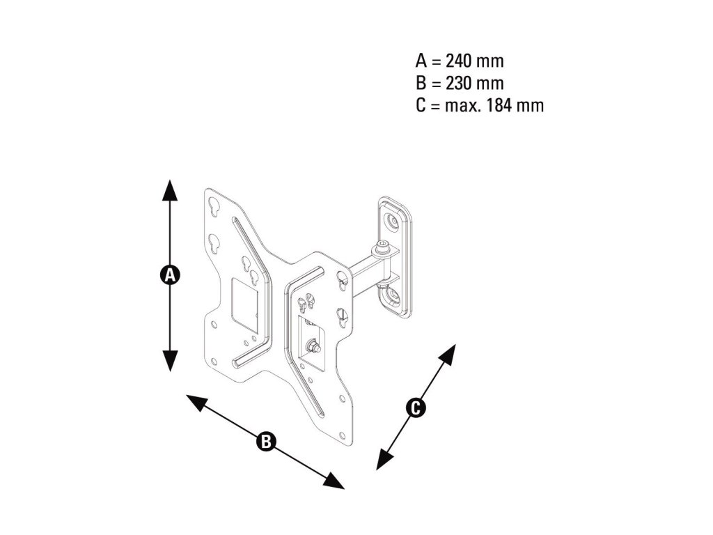 pohyblivý držák pro LCD obrazovky s úhlopříčkou cca 10" až 46" (25 až 117 cm), VESA (rozteč závitů): 75x75, 100x100, 200x100, 200x200, 1 nosné rameno, 2 klouby, nosnost: max. 20 kg
