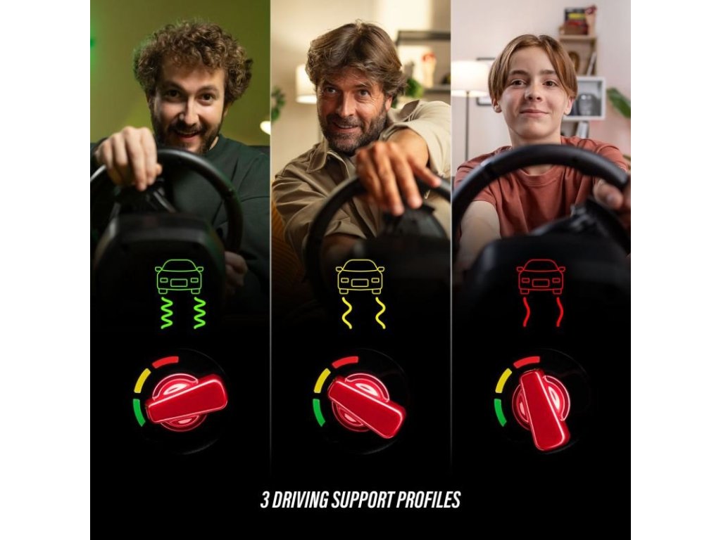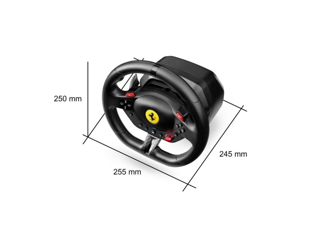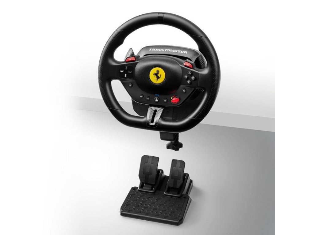 Sada volantu a pedálů, rozsah otáčení volantu 240°, 3 jízdní profily, oficiální Ferrari licence, průměr volantu 255 mm, kompatibilní s PS5/PS4/PC
