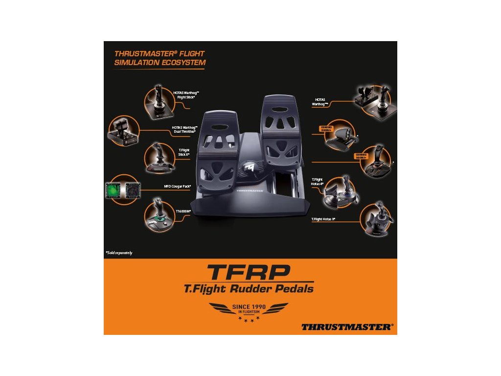 USB pedály mohou být kombinovány s Thrustmaster USB joysticky (HOTAS Warthog, T16000M)** a MFD Cougar Pack** ovládacím panelem tak, aby byly akceptovány jako jedno USB zařízení