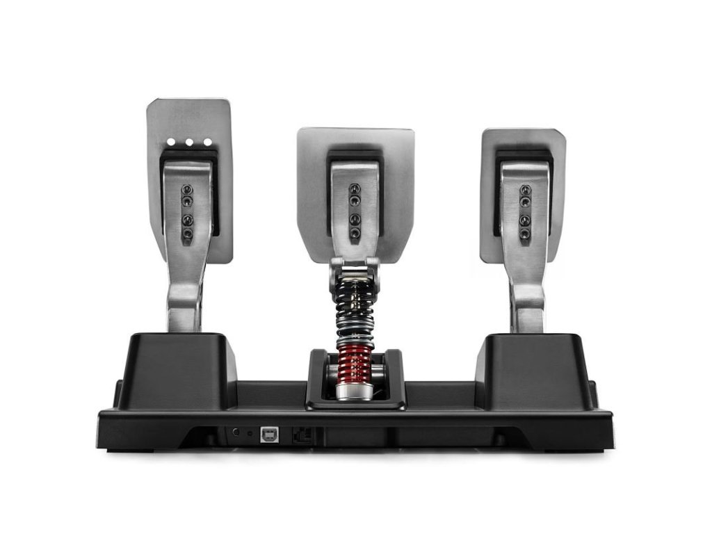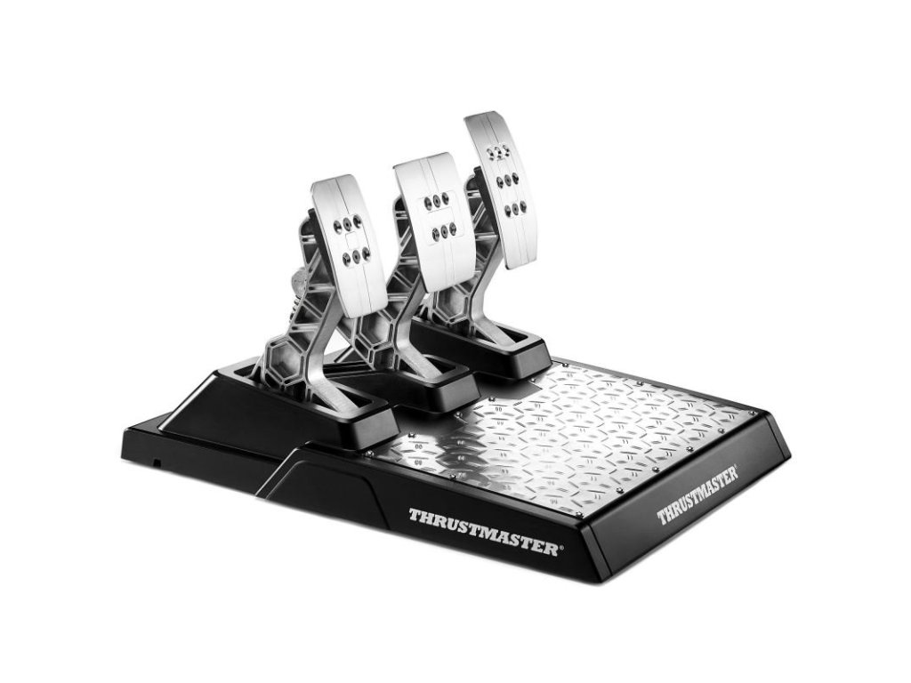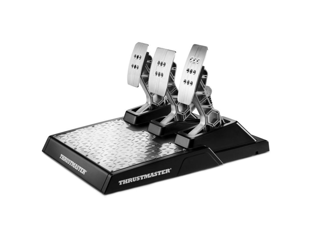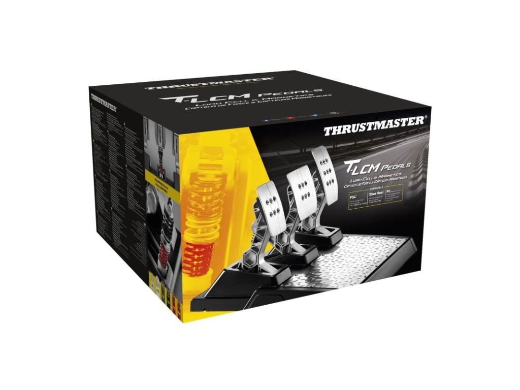 Univerzální a stabilní pedálová souprava T-LCM Pedals poskytuje uživatelům při závodech významné výhody: pedály jsou nastavitelné; souprava 6 pružin umožňuje mnoho možností nastavení; jednotka je vybavena protiskluzovým povrchem, ze 100% vyrobena z kovových materiálů; a nastavení pedálové soupravy (mrtvé zóny a elektronická síla [Brake Force]) lze seřídit prostřednictvím přiloženého softwaru.