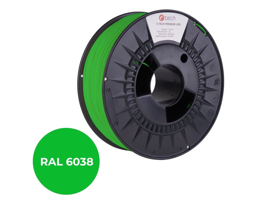 Tisková struna (filament) C-TECH PREMIUM LINE, PETG, luminiscenční zelená, RAL6038, 1,75mm, 1kg