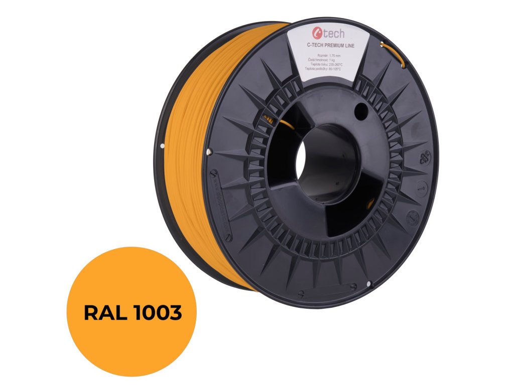 Tisková struna (filament) C-TECH PREMIUM LINE, PETG, signální žlutá, RAL1003, 1,75mm, 1kg