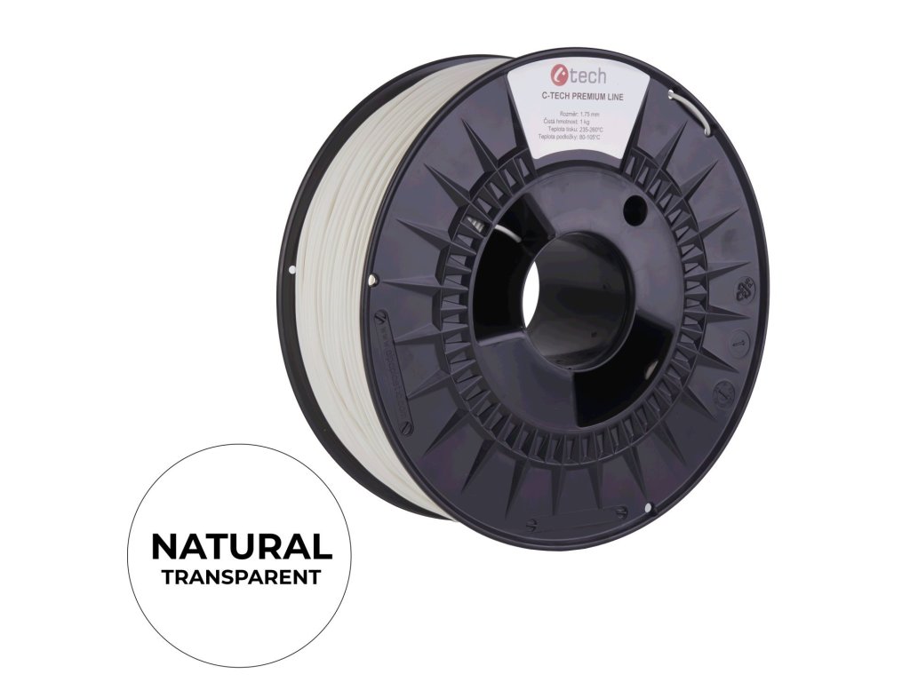 Tisková struna (filament) C-TECH PREMIUM LINE, PETG, transparentní, 1,75mm, 1kg