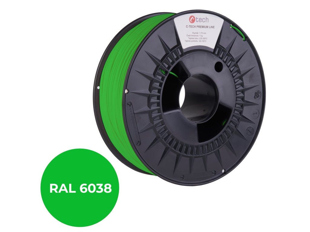 Tisková struna (filament) C-TECH PREMIUM LINE, PLA, luminiscenční zelená, RAL6038, 1,75mm, 1kg